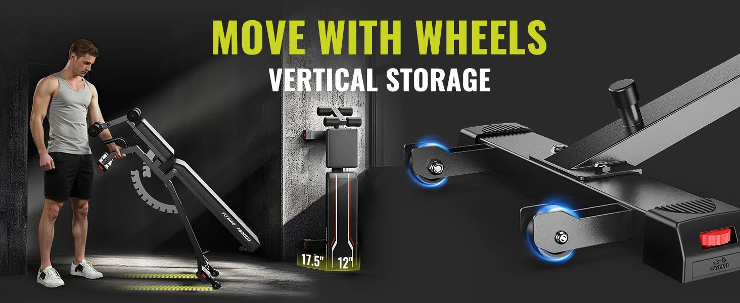 Flybird adjustable weight bench allows upright storage to save space to the greatest extent.