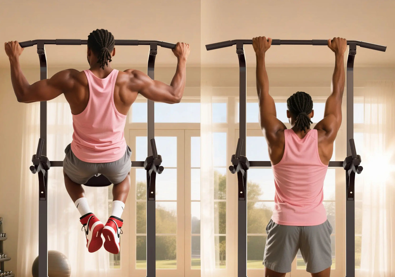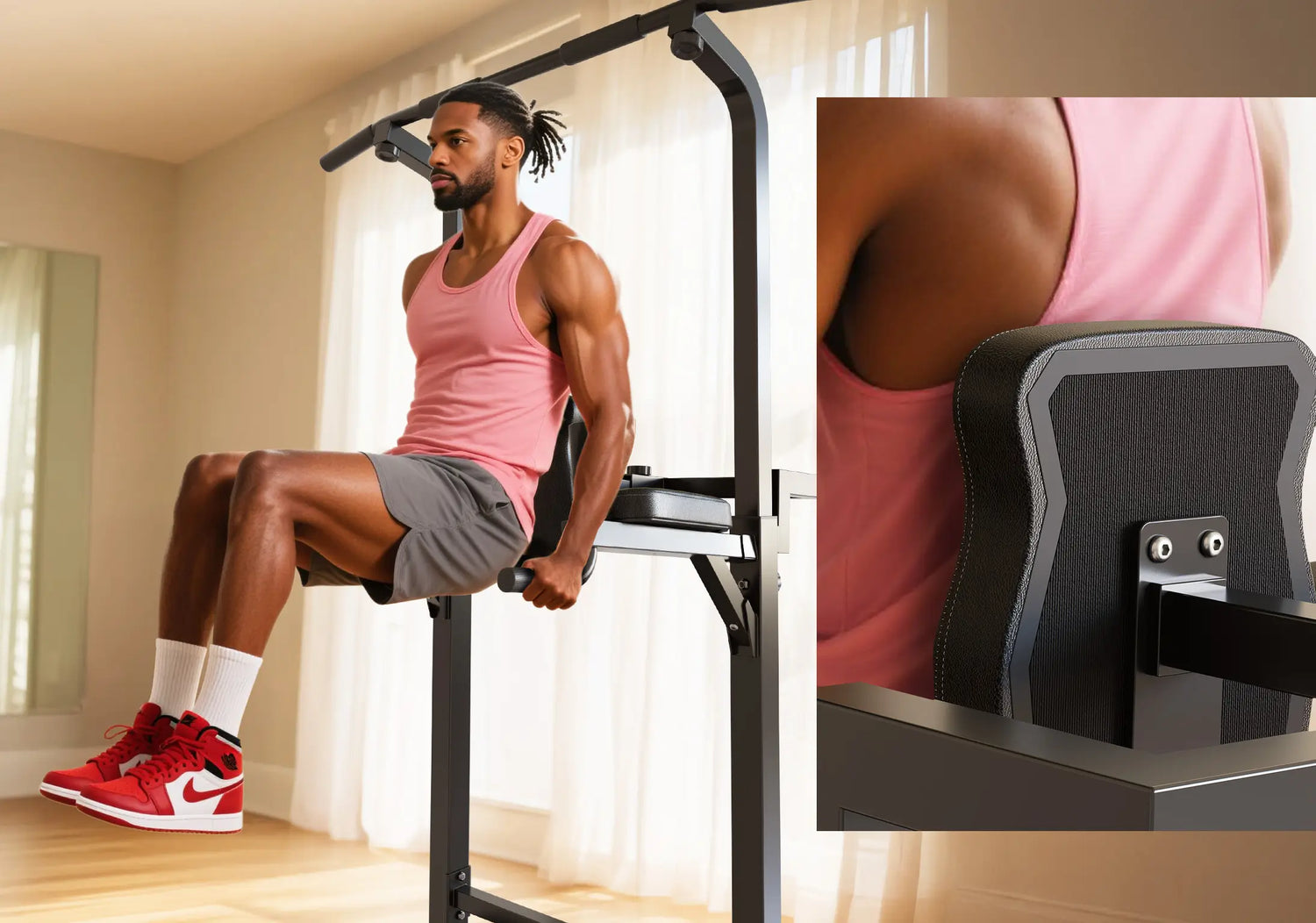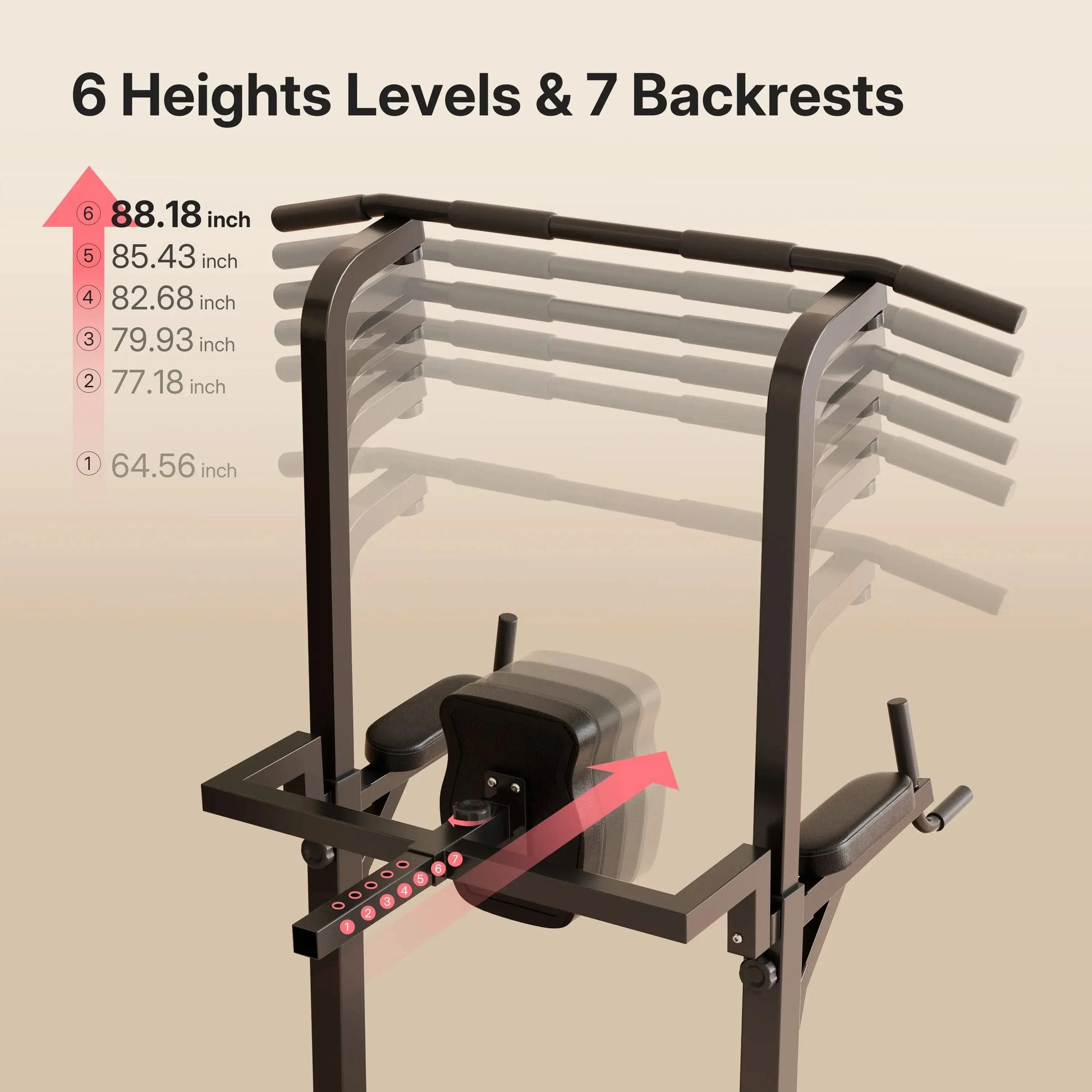 - Adjustable Knob: The backrest distance and pull-up bar height can be easily adjusted with a knob for effortless switching to your desired settings.